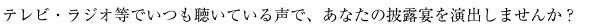 テレビ・ラジオ等から流れてくる声であなたの結婚式を演出しませんか?お気軽にお問い合わせ下さい。